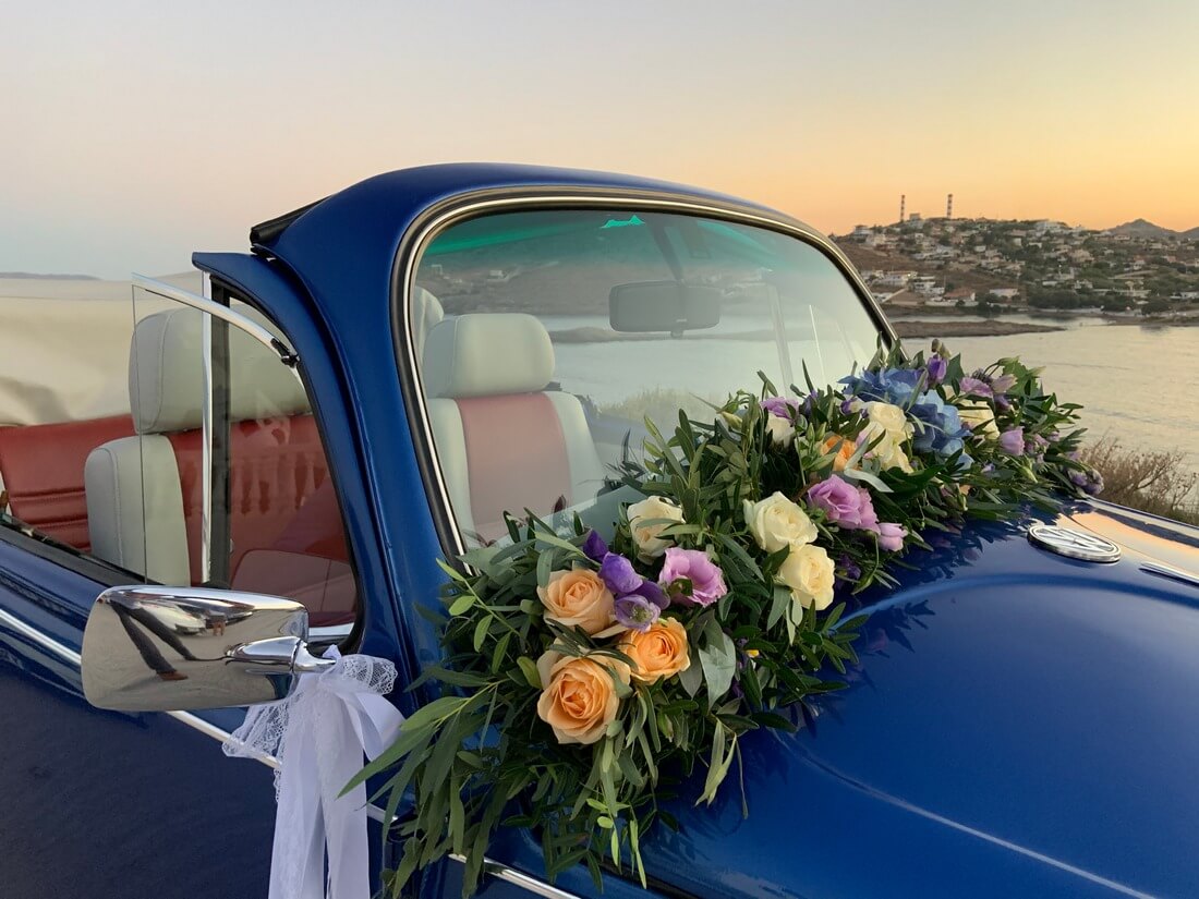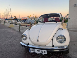 Ένας Beetle με τις κλασσικές γραμμές του, τις καμπύλες του, τα χρώματα του και τον διαχρονικό σχεδιασμό του ταιριάζει απόλυτα με κάθε είδους εκδήλωση. Δημιουργεί μια υπέροχη αίσθηση νοσταλγίας στους καλεσμένους σας και με τα μοναδικά χαριτωμένα χαρακτηριστικά του σας χαρίζει υπέροχες φωτογραφίες και video .