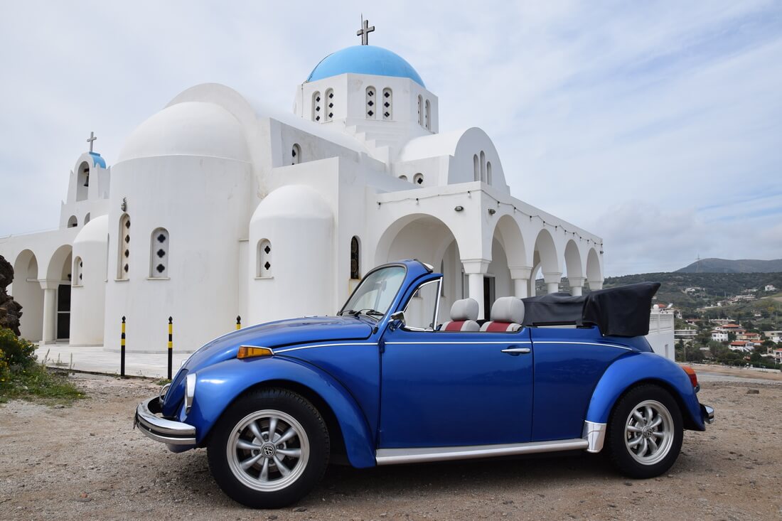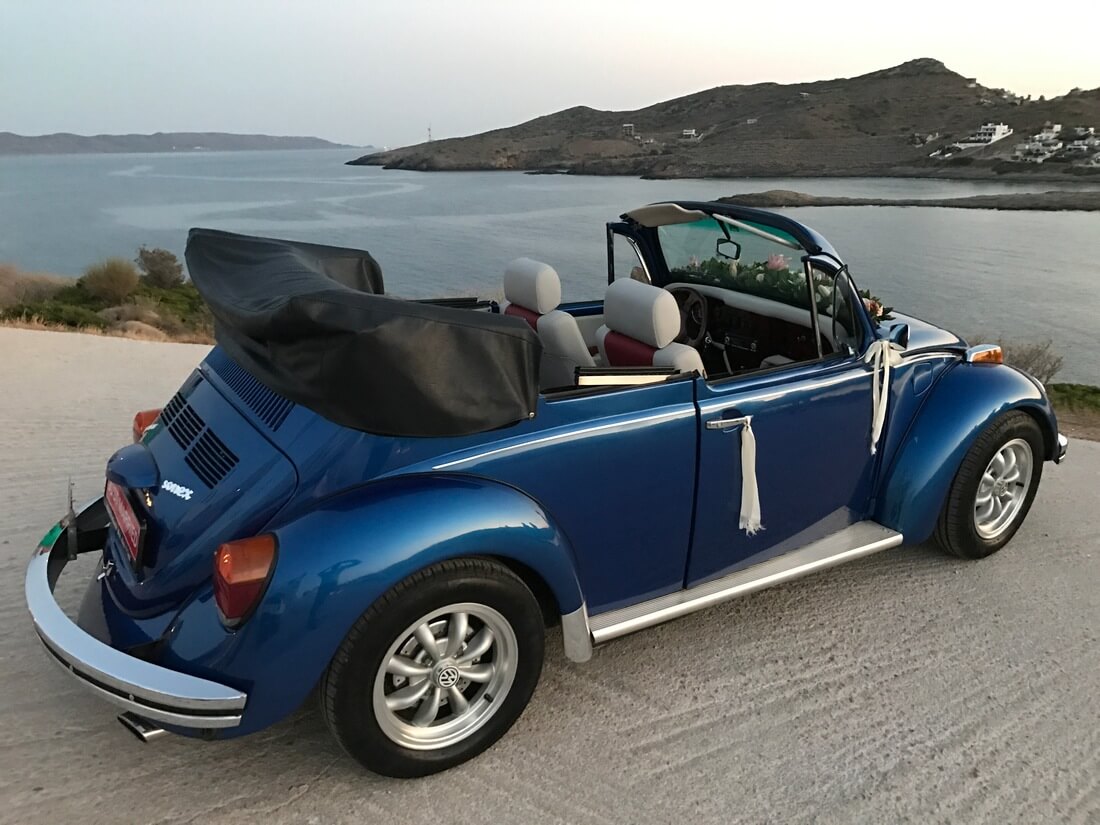 Μπορείτε να επιλέξετε μεταξύ του VW Beetle Cabrio 1970 και του VW Super Beetle (Ragtop) 1973. Όποια κι αν είναι η επιλογή σας θα έχετε την δυνατότητα να απολαύσετε την αίσθηση του «ανοικτού» vintage οχήματος.