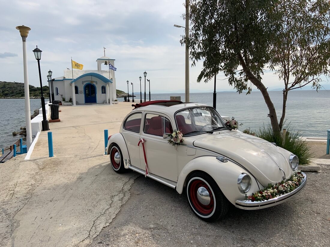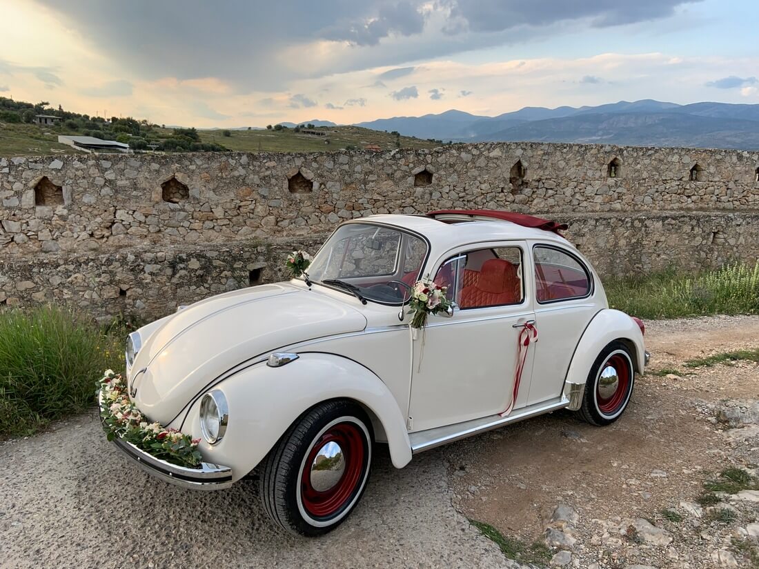 Ο διάσημος Beetle υπήρξε και εξακολουθεί ακόμα και σήμερα να είναι ένα διαχρονικό σύμβολο μιας ολόκληρης εποχής και πολλών διαδοχικών γενεών! Η επιλογή του σαν όχημα αποτελεί έναν μοναδικό τρόπο εμφάνισής σας και μια ξεχωριστή εμπειρία που τόσο εσείς όσο και οι καλεσμένοι σας θα θυμούνται για πάντα !