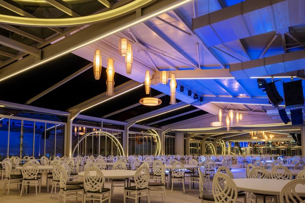 Υπερυψωμένη αίθουσα μπροστά από τη πισίνα (250 τ.μ.) για πραγματοποίηση δεξιώσεων, εταιρικών events, gala dinners!