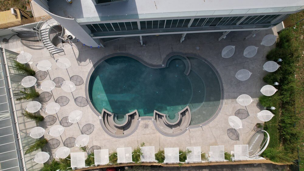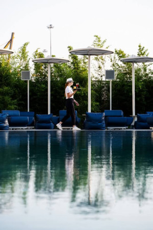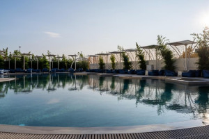 Πισίνα η οποία δεσπόζει σε έναν μοναδικά καλαίσθητο εξωτερικό χώρο (800 τ.μ.) και συνδυάζει την απόλυτη χαλάρωση με την έντονη διασκέδαση. Αυτό υπόσχεται, τόσο το pool bar με τα μοναδικά αρώματα καφέ, ποτά, ιδιαίτερα cocktails, όσο και ο chef που με την έμπειρη ομάδα του, ξυπνάει ευχάριστα τους γευστικούς κάλυκες των επισκεπτών.