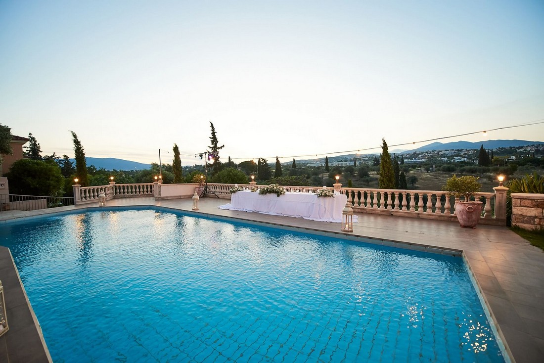 Την επαφή με τον κατάφυτο εξωτερικό χώρο και την πισίνα δεν θα τη στερηθείτε ακόμα και σε περίπτωση βροχής, καθώς ο minimal αισθητικής στεγασμένος χώρος, με διάφανη οροφή, σας προστατεύει από τις καιρικές συνθήκες, χωρίς να διαταράσσεται η αρμονία του χώρου.