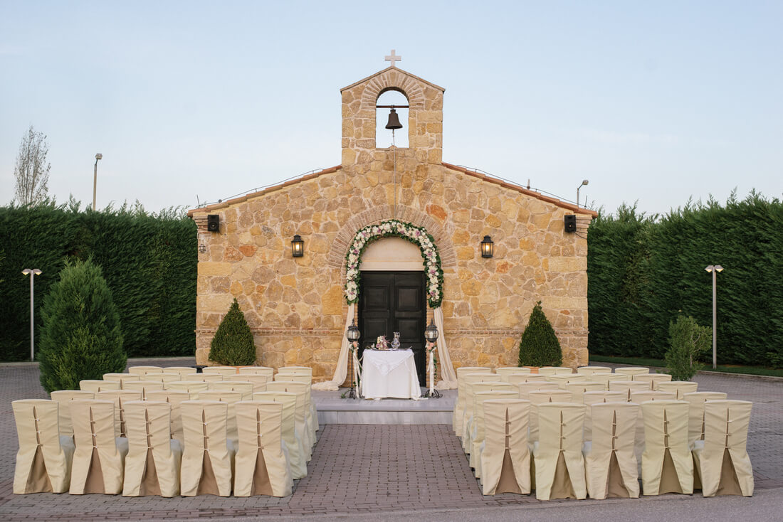Το κτήμα Οινότρια Γη διαθέτει λιθόκτιστο Ναό Κωνσταντίνου και Ελένης που ανήκει στη Μητρόπολη Κηφισιάς-Αμαρουσιου -Ωρωπου, στο οποίο μπορούν να πραγματοποιηθούν μυστήρια γάμου και βαπτίσεων μέσα ή έξω (χωρητικότητας έως 70 άτομα).