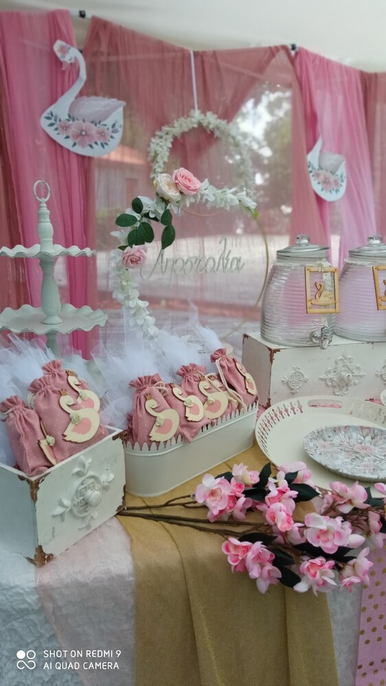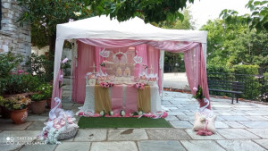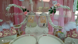 Μυρωδάτα λουλούδια, κεριά, σατέν κορδέλες, αέρινα τούλια, ακριβές οργάντζες και περίτεχνες δαντέλες, γίνονται στα χέρια της οι πιο πολύτιμοι συνεργάτες για να δημιουργήσουν μια υπέροχη ατμόσφαιρα, όπου θα ξεκινήσει το πιο γλυκό παραμύθι της ζωής σας... η βάπτιση του μωρού σας!