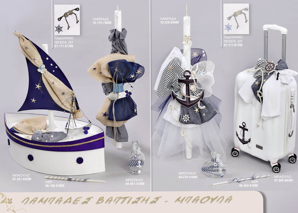 - Μοναδικά καλόγουστα σετ νονού με ρουχαλάκια επώνυμα, παπουτσάκια δερμάτινα και ανατομικά, κουτιά, λαμπάδες, μαρτυρικά, πετσέτες όλα στολισμένα και στην μοναδική τιμή των 220€ όλο το σετ.